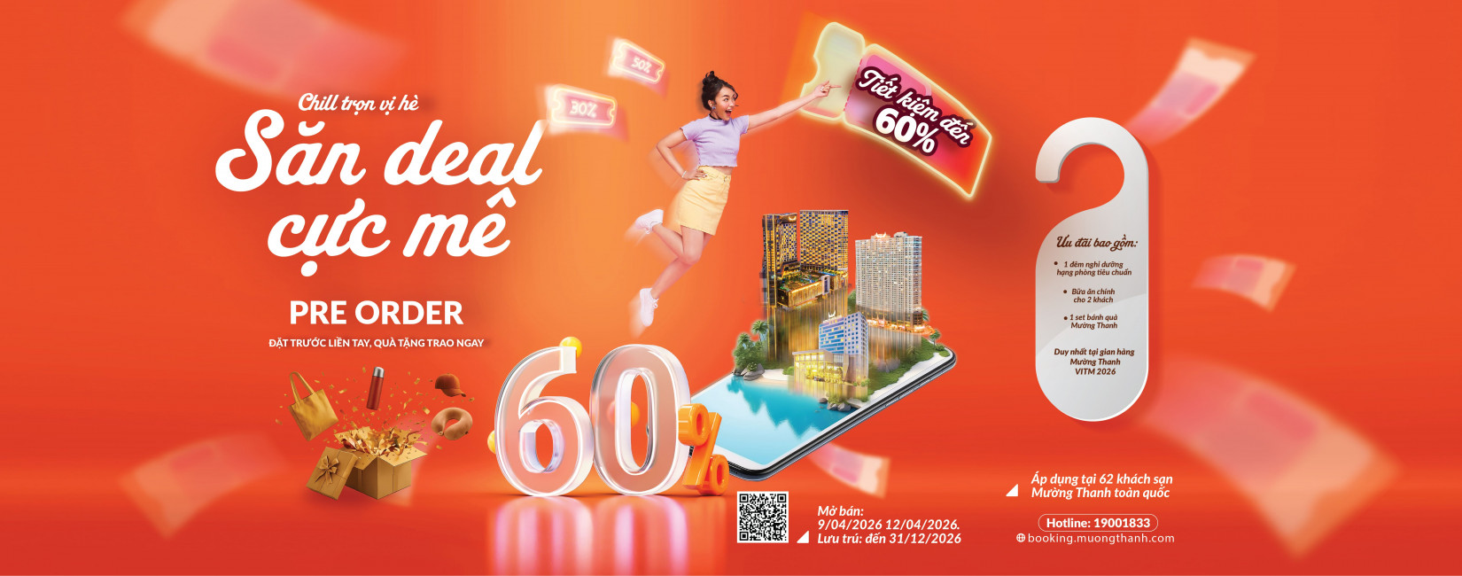 Touching sincerityMường Thanh được chứng nhận là “Chuỗi khách sạn tư nhân lớn nhất Đông Dương” với hệ thống trên 60 khách sạn phủ hơn 40 tỉnh thành từ Bắc vào Nam và nước bạn Lào. Trên muôn nẻo hành trình khám phá Việt Nam, du khách có thể lựa chọn Mường Thanh là điểm dừng chân lý tưởng, hoàn toàn yên tâm về sản phẩm đồng nhất và các dịch vụ đa dạng theo nhu cầu.