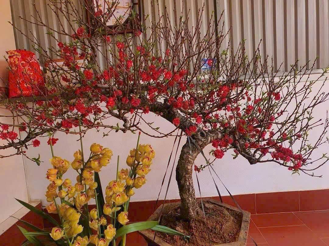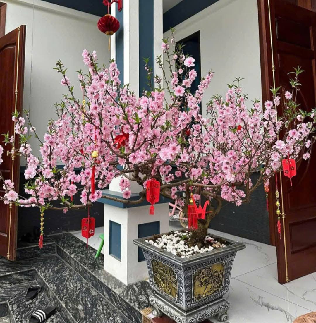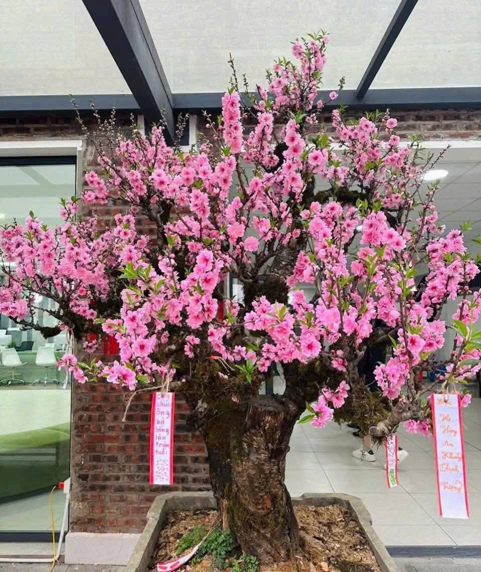 Những cây đào được gia chủ nâng niu vì chúng là loại hoa báo xuân và theo quan niệm có thể xua đuổi tà khí