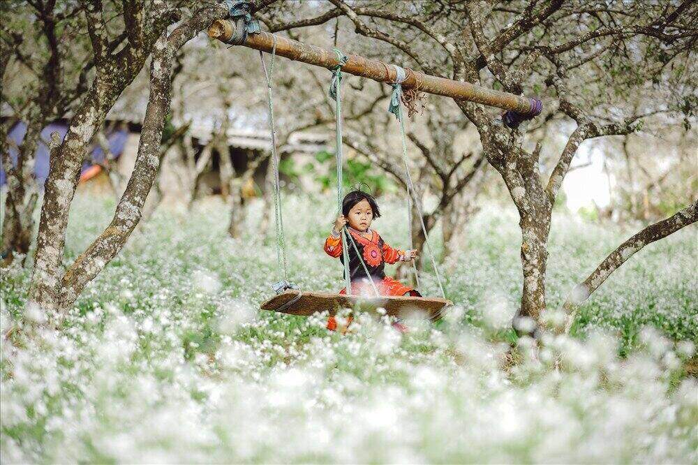 Hàng nghìn cây mận nở hoa trắng trời, sắc trắng tinh khôi phủ khắp những thung lũng, sườn đồi tạo nên cảnh đẹp mê hoặc lòng người.