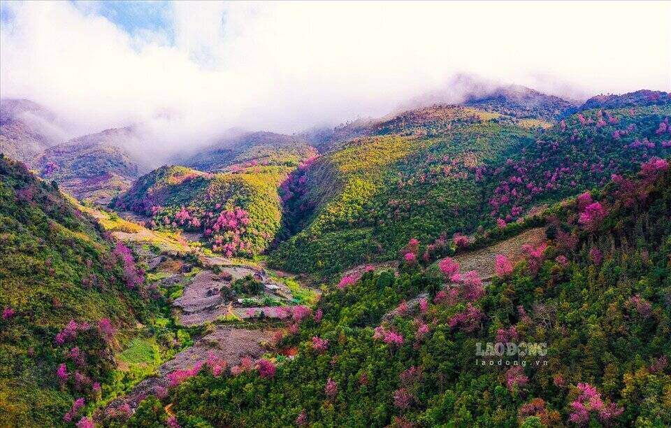 Không chỉ có hoa cải, mùa xuân, những cây đào núi của đồng bào vùng cao bung nở cũng tạo nên bức tranh hữu tình mê đắm khách gần xa. Sắc hồng quyến rũ tại “miền đá nở hoa” đã thổn thức biết bao tâm hồn.