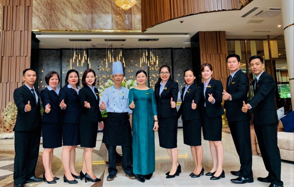 GM Lê Thị Hiền chụp ảnh lưu niệm cùng CBNV Khách sạn Mường Thanh Grand Xa La.