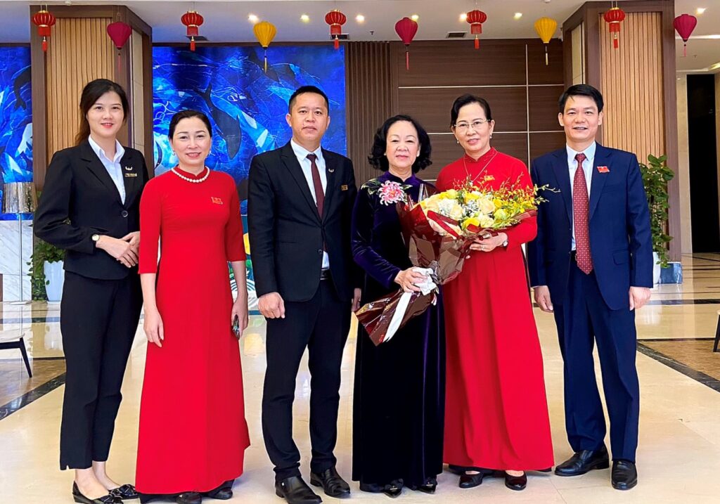 Thay mặt CBNV khách sạn, Anh Nguyễn Thái Hải – Giám đốc điều hành Mường Thanh Luxury Hà Nam đã gửi tặng bó hoa tươi thắm cùng lời chúc tốt đẹp nhất đến Ủy viên Bộ Chính trị – Trưởng ban Dân vận Trung ương Trương Thị Mai.
